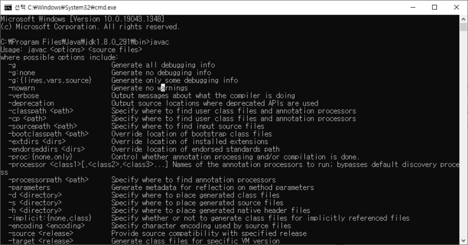 java가 설치된 경로로 가서 bin폴더 주소창에서 cmd 실행 - javac 입력