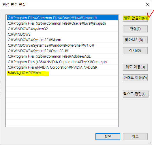 ⑤ 새로 만들기 - %JAVA_HOME%\bin 입력