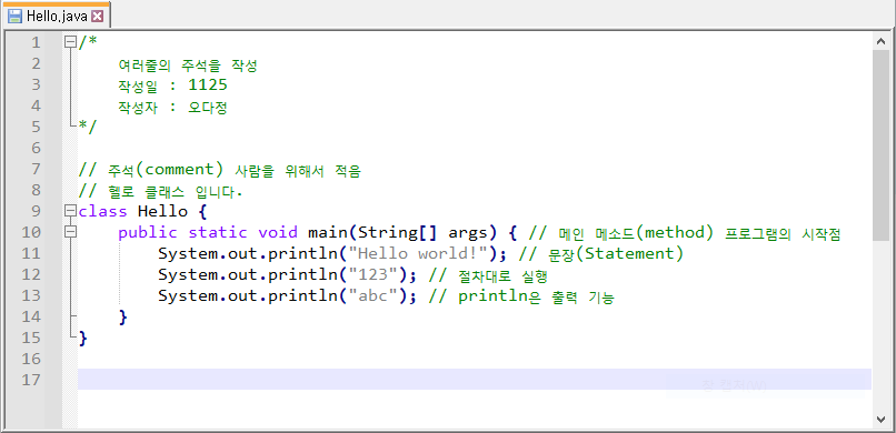 - 사람을 위해서 적음 (컴파일러는 주석을 무시함)